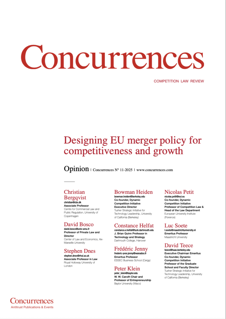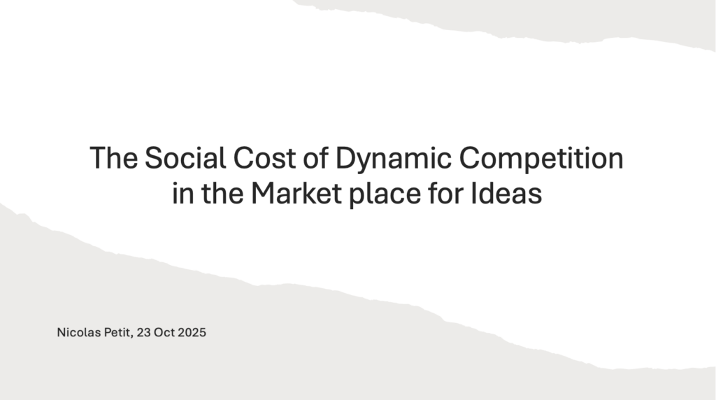 Publications Designing EU merger policy for competitiveness and growth– Article by Christian Bergvist, David Bosco, Stephen Dnes, Bowman Heiden, Constance Helfat, Frédéric Jenny, Peter Klein, Nicolas Petit, Luc Soete, David Teece (2025). The Social Cost of Dynamic Competition in the Market place for Ideas– Slides by Nicolas Petit (2025) Monopoly Maintenance Law: Underdeveloped and Misdirected– Working paper by Nicolas Petit Submission to the European Commission (EC) on Merger Guidelines.– Submission by David Bosco, Marie Cartapanis, Jennifer Pullen and Anouk Van der Veer. Buyer Power and Power Buyers in Cellular SEP Licensing: Are there Implications for Competition and Competition Law?– Working paper by Kalyan Dasgupta, David J. Teece, and Dante Quaglione. Dynamic Competition in Market Definitions and Merger Review– Summary and syllabus by Filip Lubinski, 2025 Antitrust rules and remedies against platfroms’ treacherous turns– Featured publication by Friso Bostoen and Nicolas Petit, 2024 Situating the Dynamic Competition Approach– Revised working paper by Nicolas Petit, Bowman Heiden, Thibault Schrepel, 2024 DCI Submission to the India Ministry of Corporate Affairs on the Draft Digital Competition BillSubmission by: Pinar Akman, Carmelo Cennamo, Juliana Domingues, Bowman Heiden, Constance Helfat, Pankhudi Khandelwal, Nicolas Petit. DCI Submission to the Brazil Ministry of Economy on the Economic. and Competitive Aspects of Digital PlatformsSubmission by: Pinar Akman, Stephen Dnes, Keith Hylton, Bowman Heiden, Constance Helfat, Nicolas Petit, Jennifer Pullen, Annika Stöhr. DCI Submission to the European Commission (EC) on Generative Artificial Intelligence.Submission by: Stephen Dnes, Lee Fleming, Keith Hylton, Bowman Heiden, Juliana Oliveira Domingues, Lola Montero Santos, Nicolas Petit, Jason Potts, Asta Pundziene. Situating Dynamic Competition: An Evolution Beyond Chicago– Working paper by Nicolas Petit, Bowman Heiden, Thibault Schrepel, 2024 Platforms’ Treacherous Turn– Working paper by Friso Bostoen and Nicolas Petit, 2023. Decoding the AI Act: A Critical Guide for Competition Experts– Working paper by Thibault Schrepel, 2023 Gatekeepers, landlords, or superstars? An empirical study of rents in the digital economy– Working paper by Sotirios Georgousis, Bowman Heiden, Nicolas Petit, 2023 DCI Comments on Draft Merger Guidelines 2023– Submission by Bowman Heiden, Filip Lubinski, Nicolas Petit, Thibault Schrepel, 2023 US Draft Merger Guidelines: Perspectives from the Industry– Slides by Nicolas Petit, 2023 Bridging Disciplines with Complexity Science: W. Brian Arthur’s Impact on Economics, Law, Institutions, and Beyond– Featured publication by Thibault Schrepel Some Background to Complexity Economics (W. Brian Arthur – NLR)Competition Policy Enforcement in a Dynamic World (Pierre Régibeau – NLR)Navigating the Death of Competition: The Emergence of Business Ecosystems and Beyond (Moore – NLR)Regulation and Competition in Digital Ecosystems: Some Missing Pieces (Eliana Garces – NLR)Platforms’ Treacherous Turn (Friso Bostoen & Nicolas Petit – NLR)Market Definition And Market Power Evaluation In Dynamic Industries (Andrea Pezzoli – NLR)Rethinking Regulation for Dynamic Digital Ecosystems (Beatriz Kira – NLR)Ecosystems and Managers (Richard N. Langlois – NLR)A Rising Trend in Market Concentration: Myth or Reality? (Benoît Durand & Apolline Jaoui – NLR)The EU Digital Markets Act: A One-of-a-kind Regulation (Ana Malheiro – NLR)The EU Digital Markets Act: It Is Not About Markets But Ecosystem Failures! (Carmelo Cennamo – NLR)Dynamic Competition, Digital Ecosystems, and Competition Policy (Wolfgang Kerber – NLR)Big Tech Acquisitions and Innovation Incentives (Raphaël De Coninck & Christoph von Muellern – NLR)Big-Tech Acquisitions and Venture Capital Funding for Start-ups (Johannes M. Bauer & Tiago S. Prado – NLR)The UK Facebook/Giphy Case: Taking Dynamic Competition Seriously (Mike Walker – NLR)Frameworks for Dynamic Competition (Gabriele Corbetta & Joe Perkins – NLR)Dynamic Challenges to Market Definition and Market Power Evaluation in Antitrust Cases (Anna Tzanaki – NLRDynamic Competition, Organizational Capabilities, and M&A: A Short Synopsis (David J. Teece – NLR) The Dynamic Competition Paradigm: Insights and Implications– Featured publication by David J. Teece, 2023 Not “Big is Bad” but “Closed is Bad”. Reviewing The New Goliaths by James Bessen– Book Review by Friso Bostoen, Lola Montero Santos, Anouk van der Veer, 2023 Capabilities Checklist for Mergers with Nascent Competitors– Publication by Nicolas Petit and David Teece, 2023 Complexity-Minded Antitrust– Featured Publication by Nicolas Petit and Thibault Schrepel, 2023 Killer Acquisitions: Evidence from EC Merger Cases in Digital Industries– Working paper by Marc Ivaldi, Nicolas Petit, and Selçukhan Ünekbaş, 2023 A Systematic Content Analysis of Innovation in European Competition Law – Working paper by Thibault Schrepel, 2023 Big Tech’s Impact on Innovation Trajectories in Platform Markets: Understanding the Dynamic Relation Between Corporate Activities and Market Activities (Carmelo Cennamo, YangYang Cheng and Claudio Panico)– Review by Filip Lubinski, 2023 Getting out of control: Emergent Leadership in a Complex World (Neil Chilson)– Book Summary by Natalia Moreno Belloso, 2023 A Framework for Antitrust Retrospectives – Illustrated by the 1993 Antitrust Case Against General Motors’ Sale of Allison Transmission – Roundtable Takeaways by Nicolas Petit, 2022 Killer Acquisitions – Literature Review by Sara Guidi and Anouk Van Der Veer, 2022 Dell – A Case Study of Dynamic Competition – Case Study by Linus J. Hoffmann, Anouk Van Der Veer, Friso Bostoen, Bowman Heiden, and Nicolas Petit, 2022 The GM/ZF (1993) Complaint – Case Study by Natalia Moreno Belloso, 2022 Mergers Involving Nascent Competition – Featured Publica